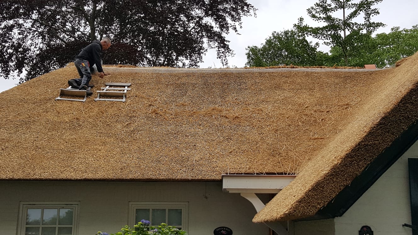 Deze prachtige woning hebben we van nieuw riet mogen voorzien. Hierbij hebben we gekozen voor Airflex als isolatie ( voor een beter binnenklimaat) met daarover heen een 18 mm houtenplaat ( veiliger tegen brand).