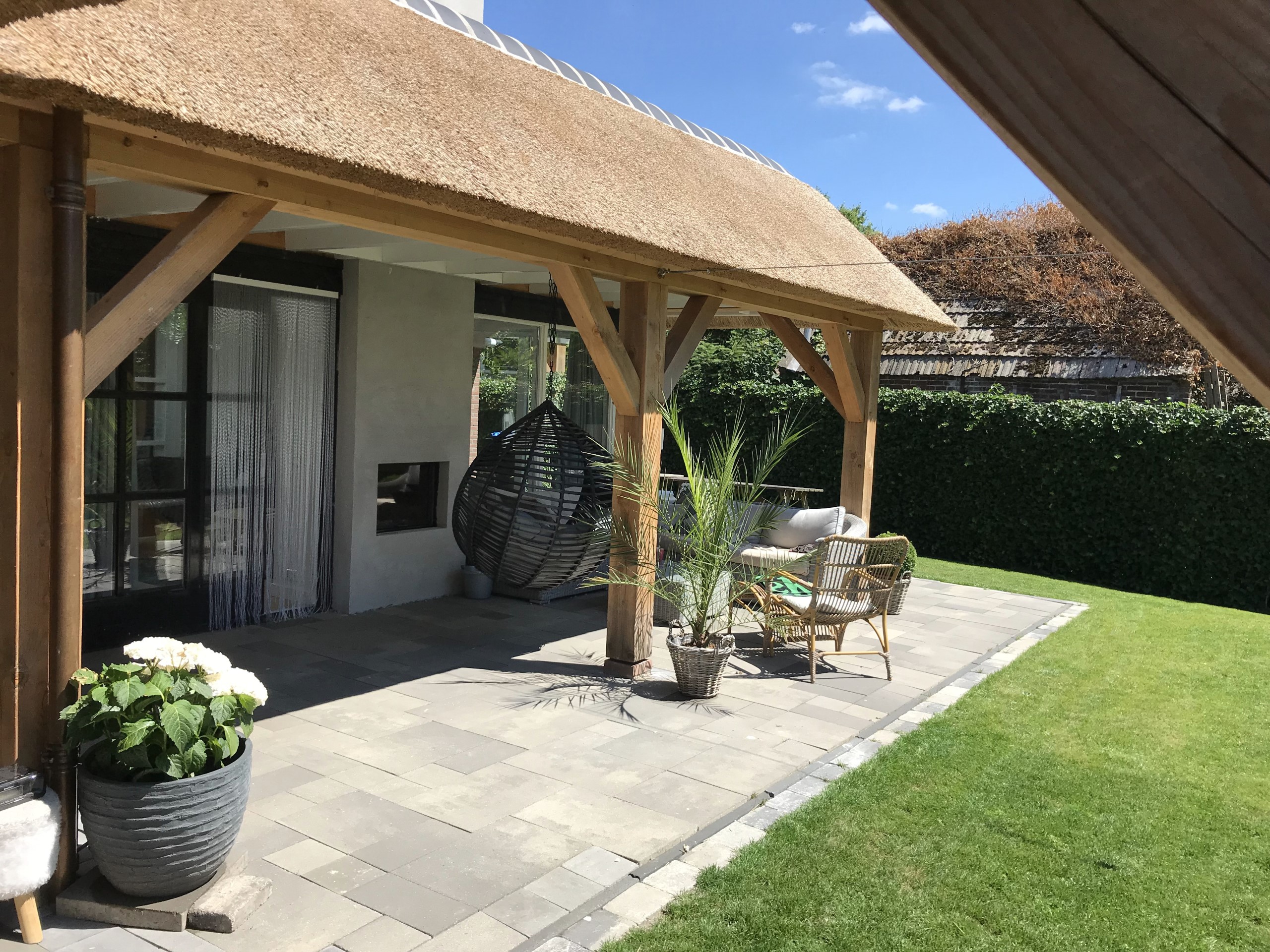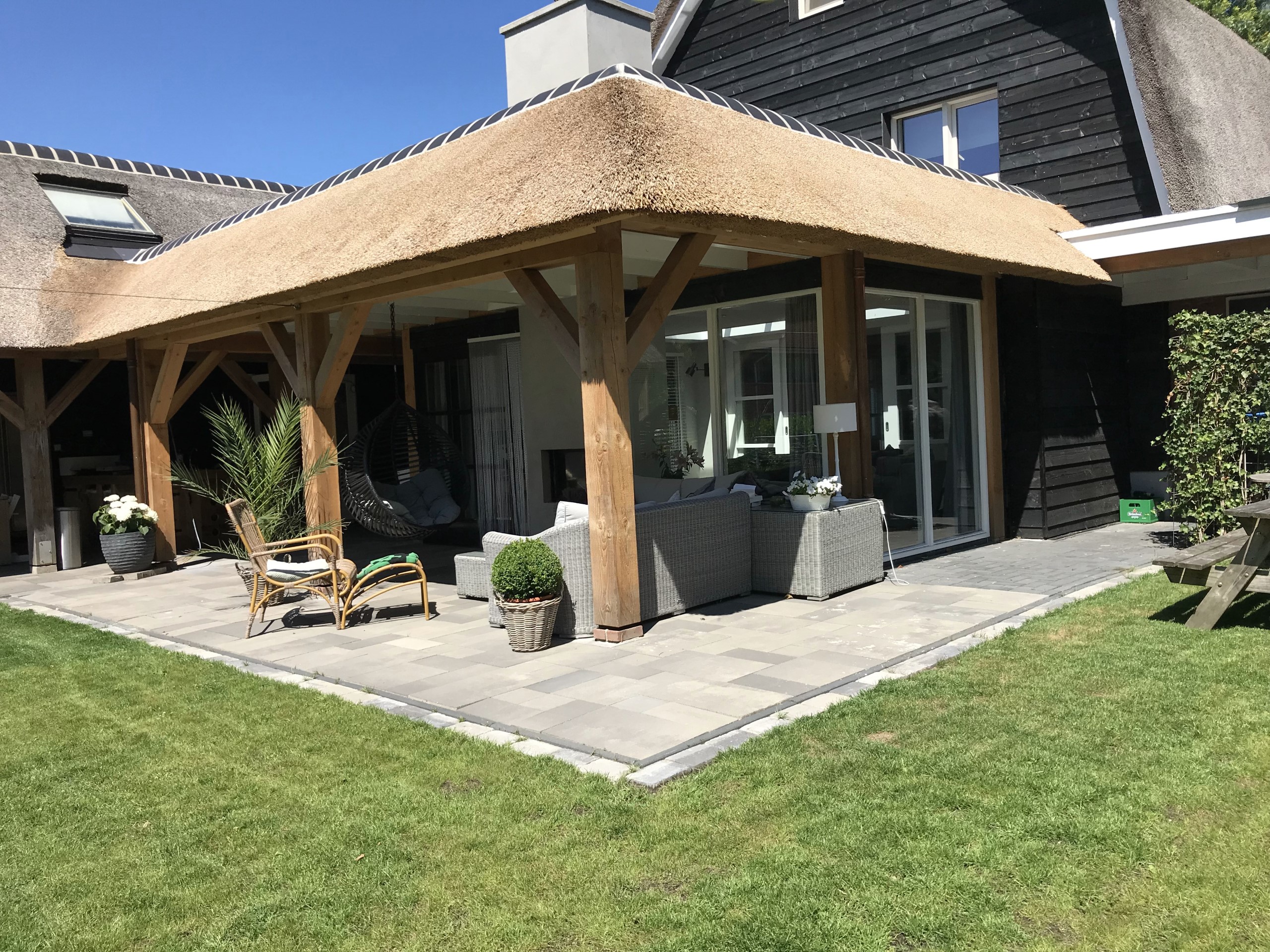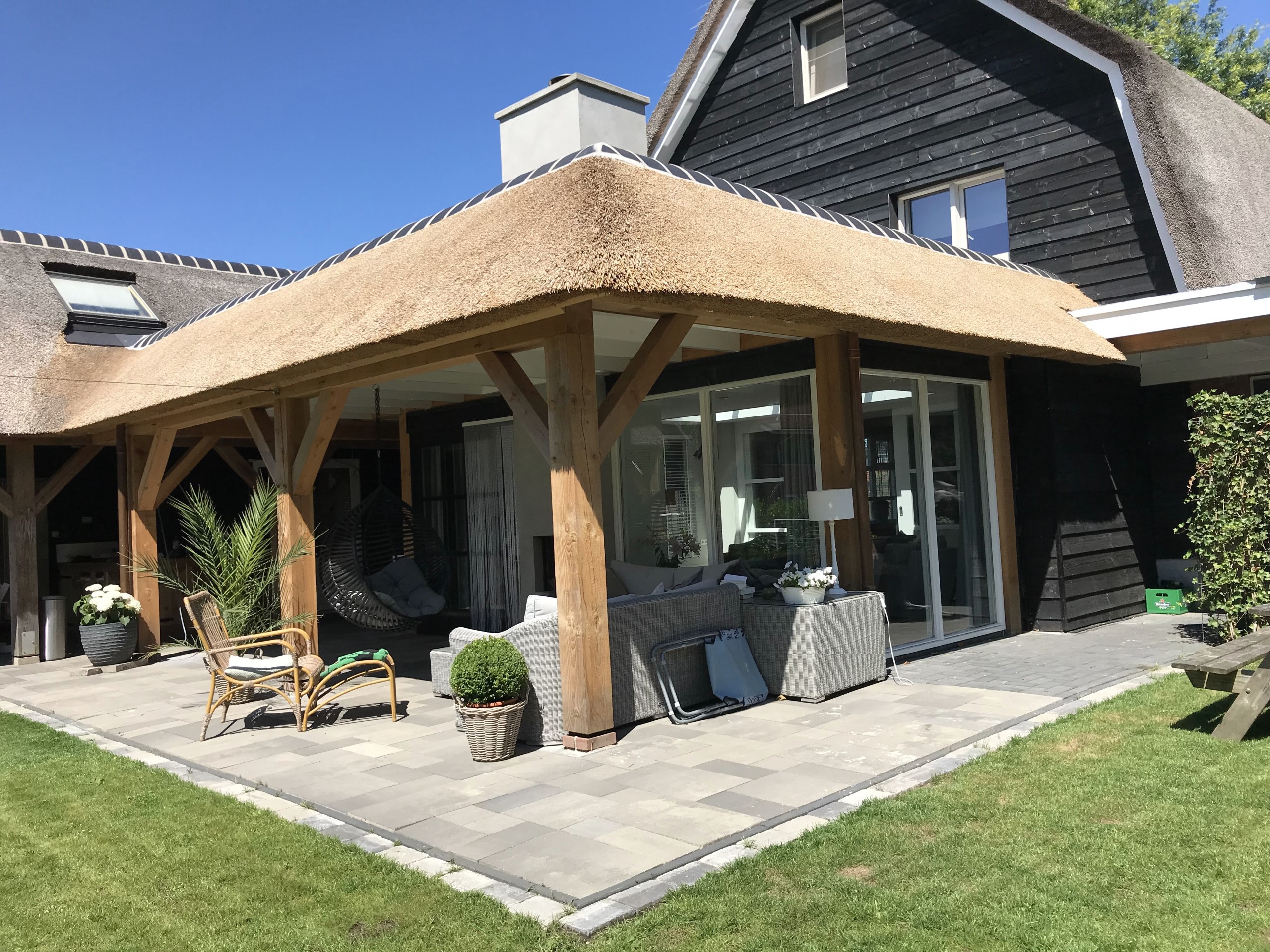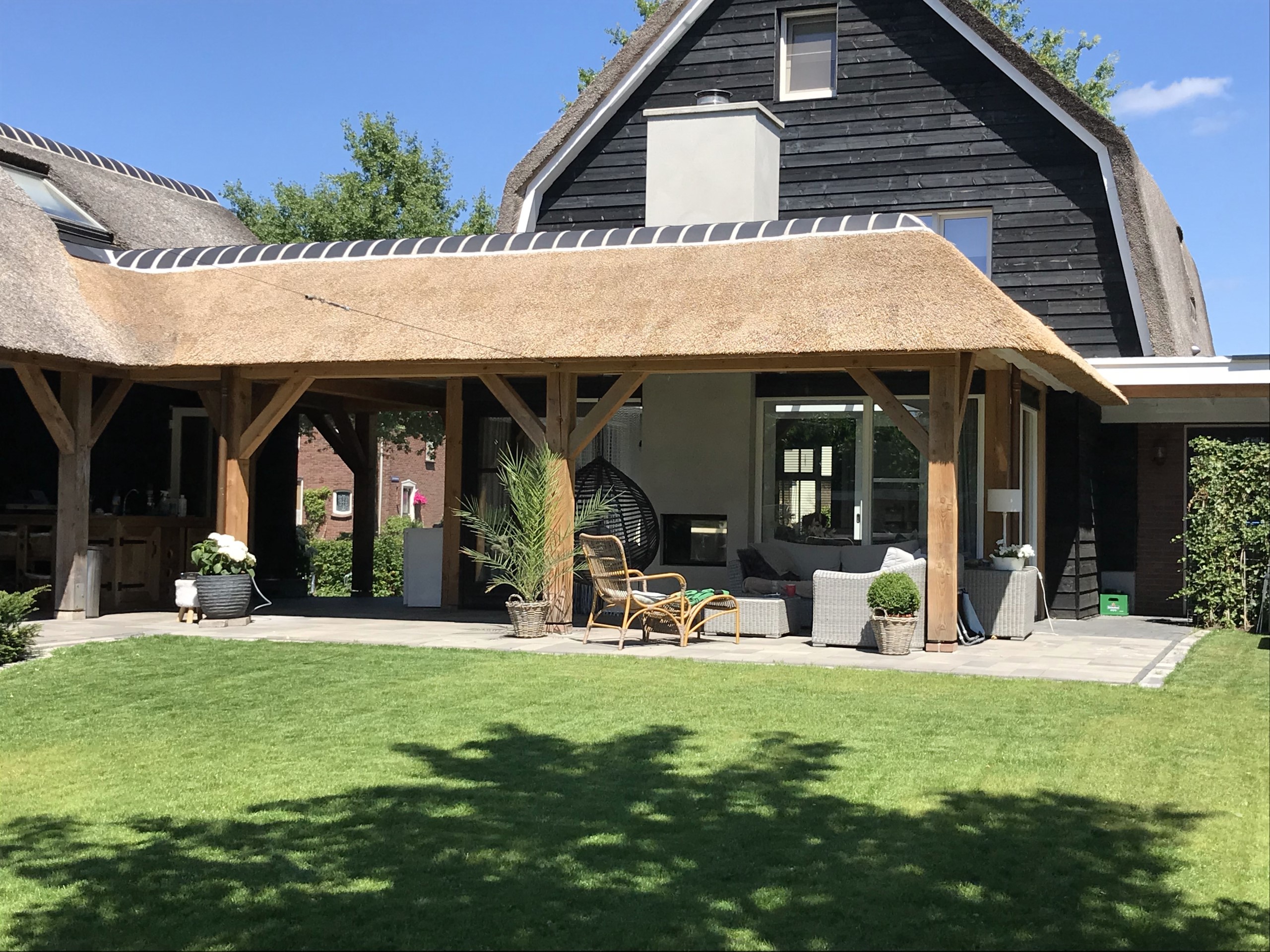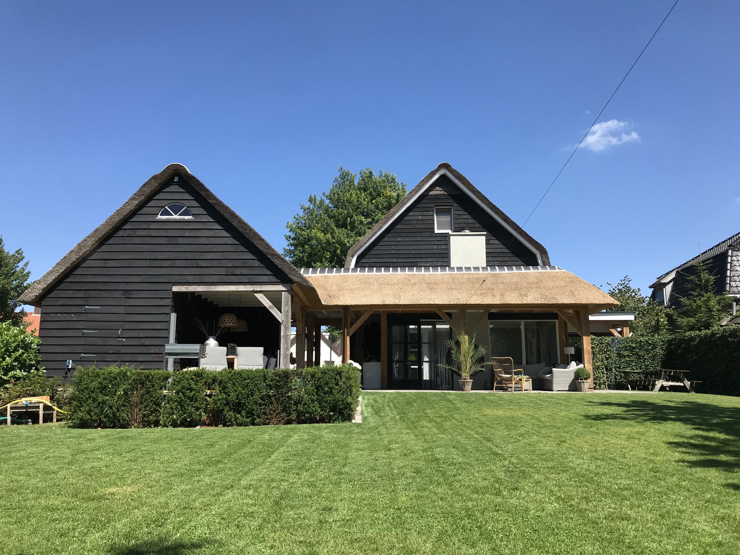 Deze woning is van een pannen dak naar een rietendak gegaan. hierbij hebben we gekozen voor Nederlands riet. Een schitterende breukkap met een mooie overloop van woning naar schuur. De douglas houten palen zorgen ervoor dat het rietendak er nog mooier uitkomt.